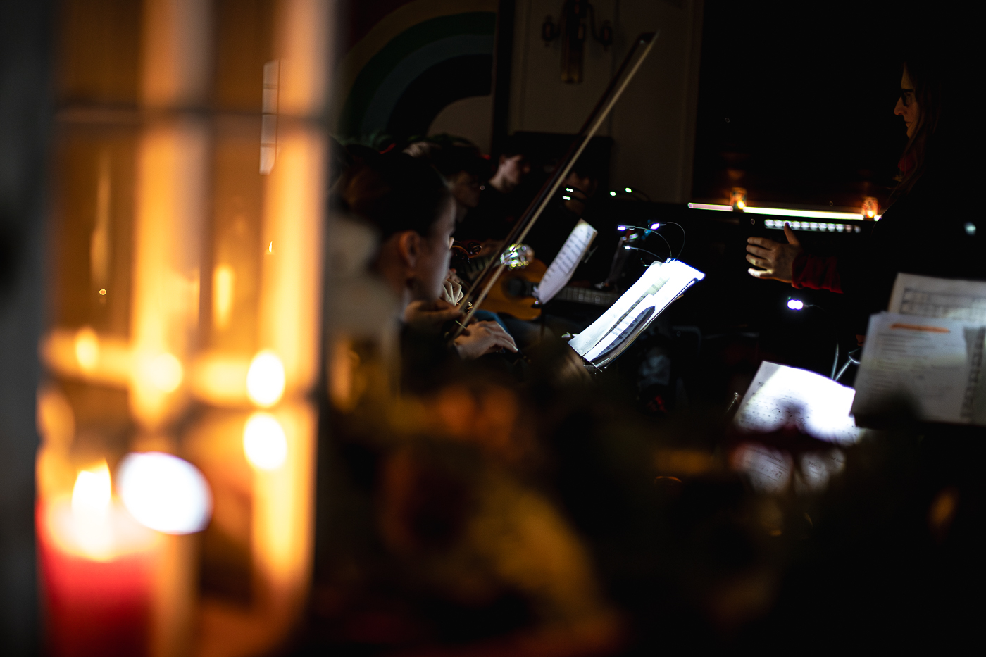 Die ganze Zeit werden dazu Weihnachtslieder oder meditative Musik gespielt, die in diesem Jahr vom Orchester der Freien Waldorfschule Dresden intoniert wurden.