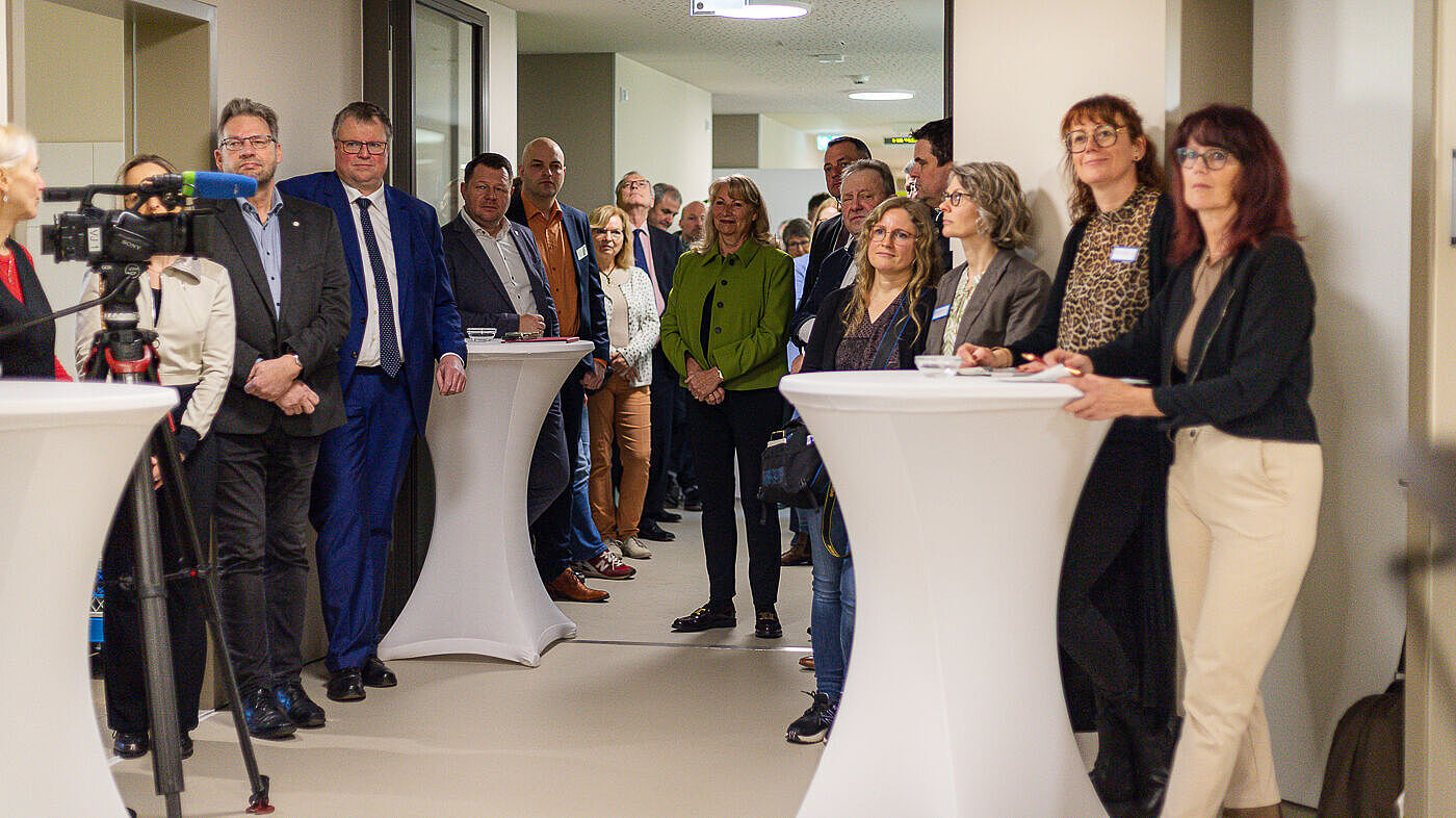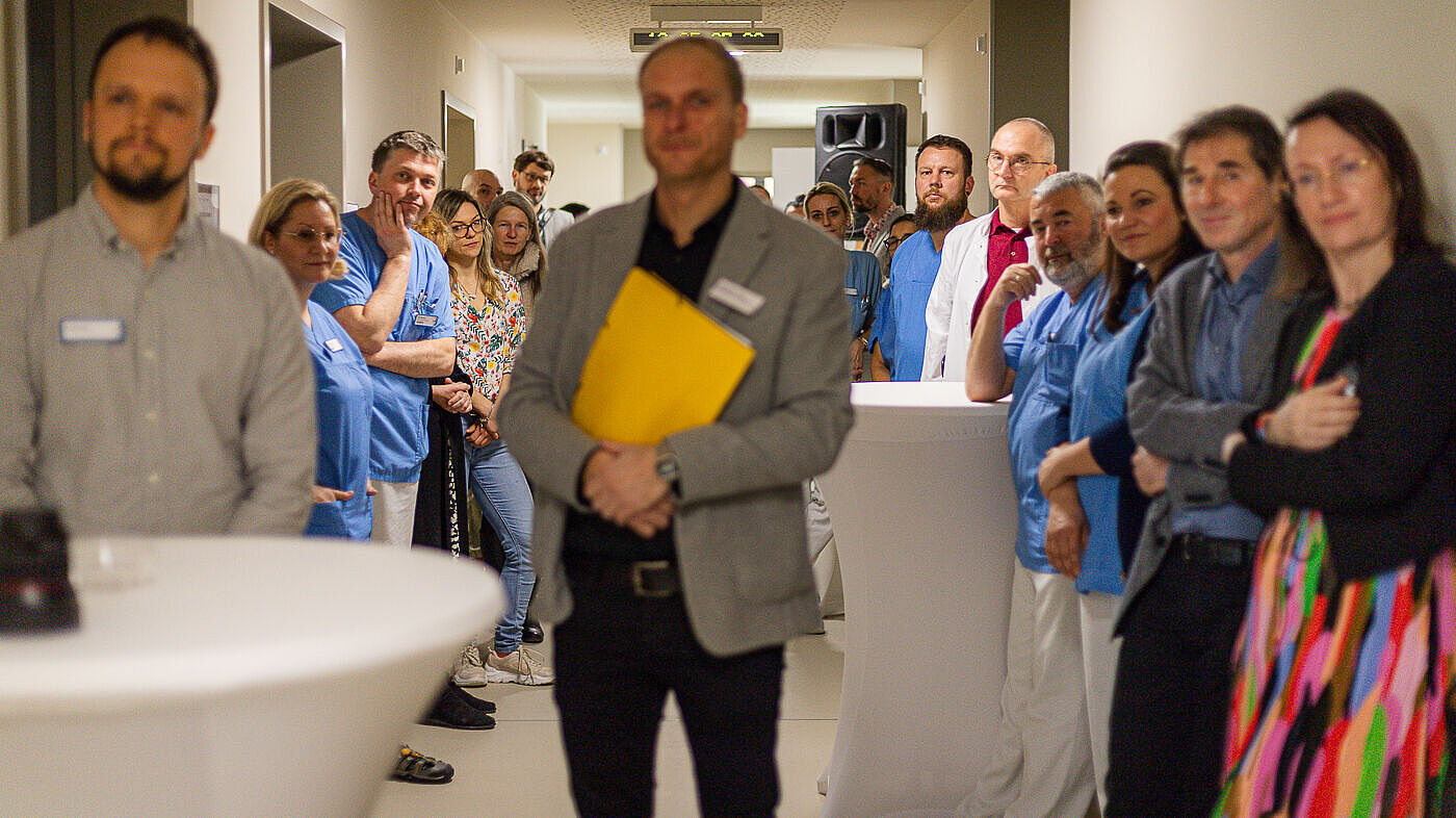 Rund 80 geladene Gäste aus Politik, Gesundheitswesen, Verbänden, Pressevertreter:innen, Architekt und Baufirmen und natürlich das Team der Klinik begleiteten die feierliche Einweihung am Standort in Radeberg.