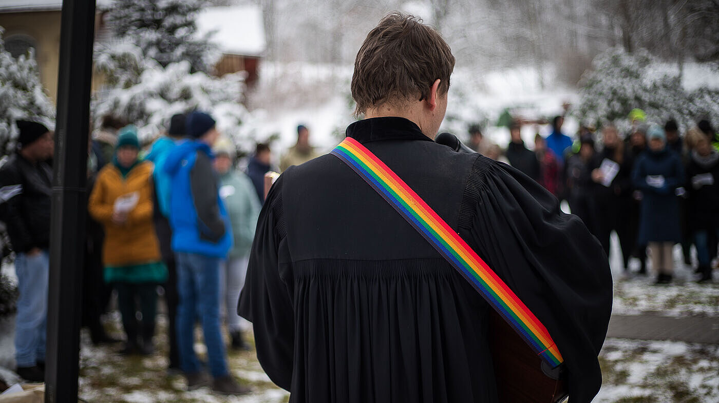 Pfarrer Edward Drath machte in seiner Andacht deutlich, dass hinter jedem der 111 Namen ein Mensch und ein Leben steht. Stellvertretend erzählte er die Geschichte von Ursula Heidrich. Die 1929 in Dresden geborene Frau kam 1940 nach Kleinwachau. 1943 wurde unsere Einrichtung geschlossen, und Ursula Heidrich wurde in die Heil- und Pflegeanstalt Großschweidnitz in der Oberlausitz verlegt – einem Ort, an dem gezielt Menschen mit Behinderungen ermordet wurden.