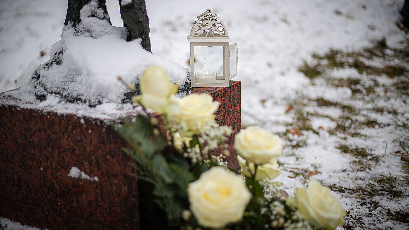 Nach der Andacht legte unsere Geschäftsführerin Sandra Stöhr weiße Rosen am Denkmal, das an unsere Opfer des Nationalsozialismus erinnert, nieder und eine Schülerin der Kleinwachauer Förderschule entzündete eine Kerze.